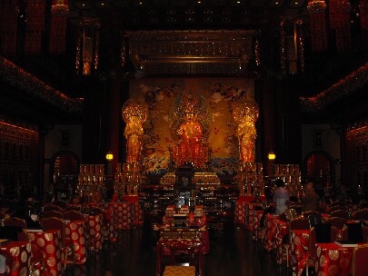 Comunque, tra uno sfarzoso sfilare di lanterne rosse, ecco finalmente una pagoda che preannuncia un tempio buddista. E che tempio! Si tratta del Buddha's Tooth Relic Temple, un edificio che custodirebbe una reliquia di Budda e, in particolare, un suo dente! |
