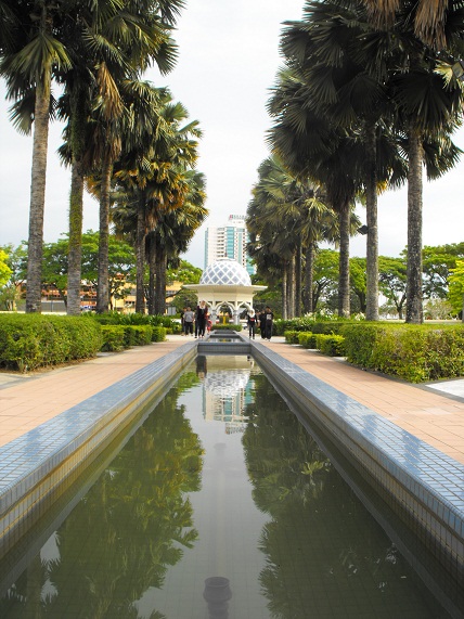 Miri è una cittadina dove domina l'etnia cinese. Percrriamo i lunghi viali paralleli che attraversano il centro fino ad arrivare a un parco chiamato "Chinese Garden" (o qualcosa del genere). E' un bel posto: laghetti, siepi ben curate, pagode: sì, l'atmosfera è molto Asia-style. Sembra quasi di essere in uno di quei tipici calendari cinesi stampati su listarelle di bambù... |