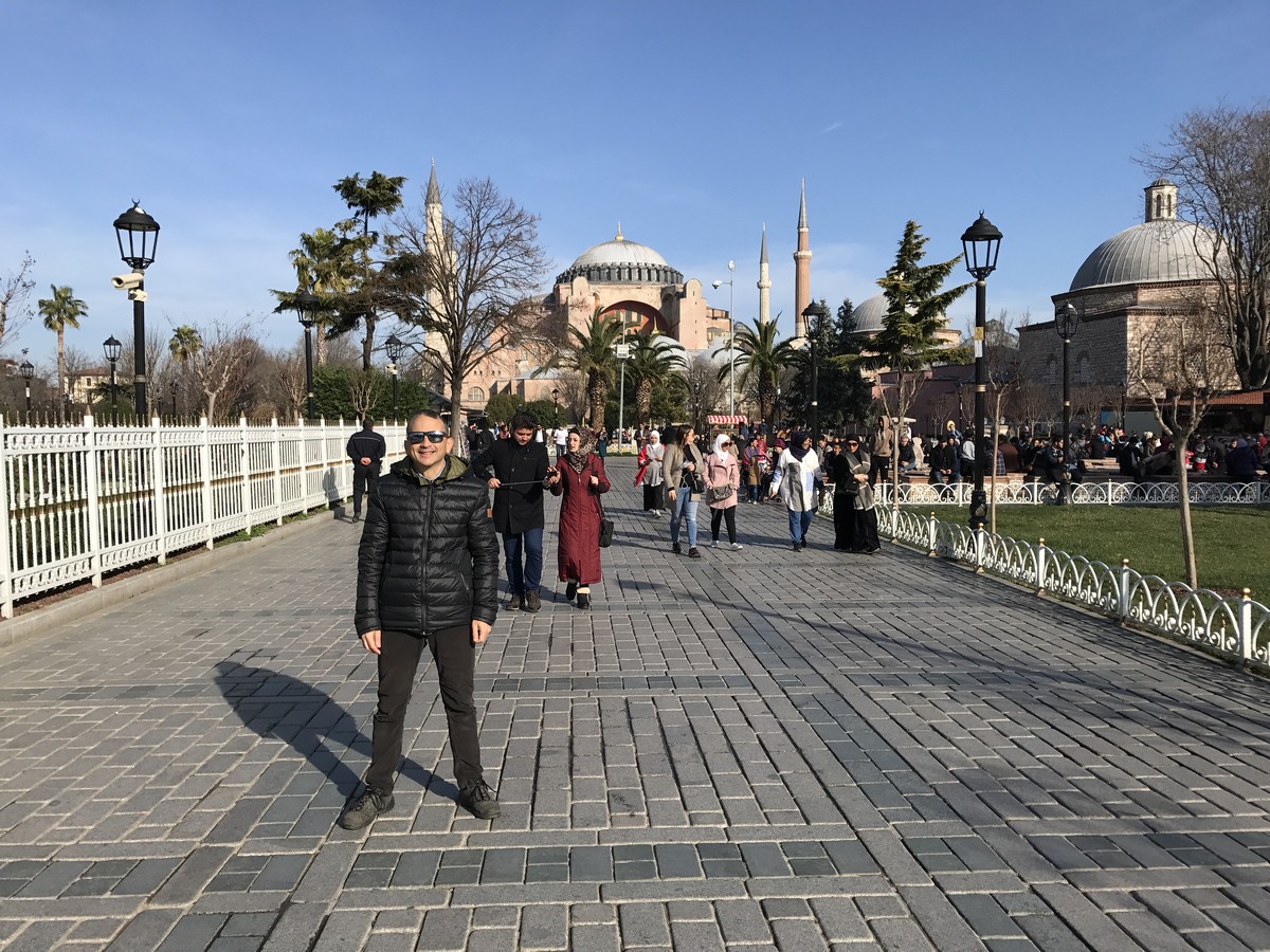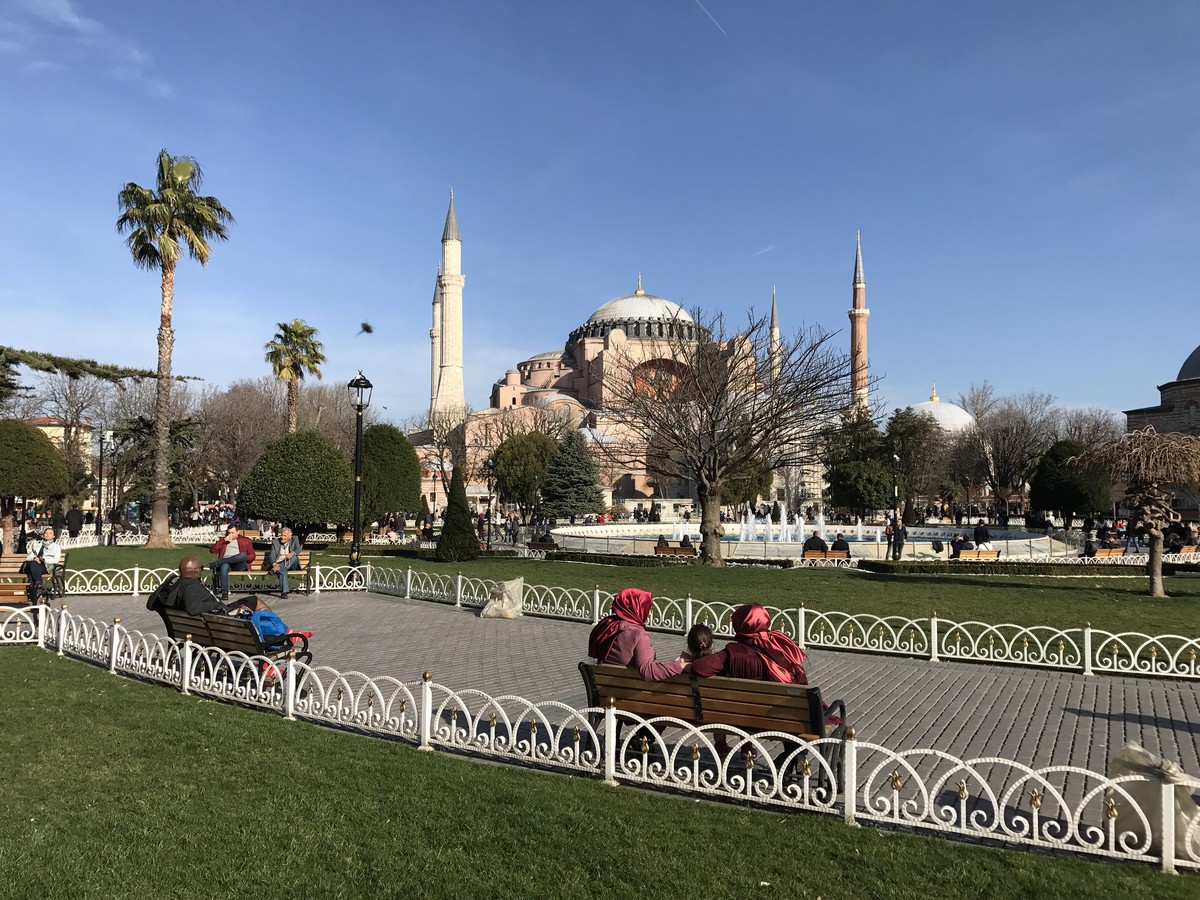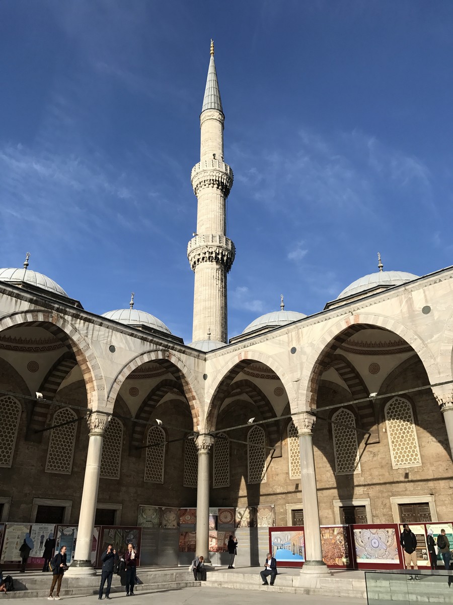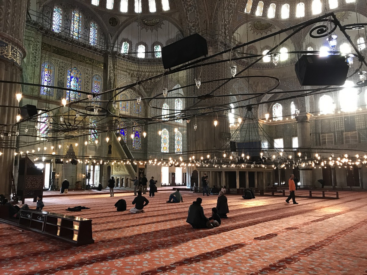 In un modo o nell'altro riusciamo a tornare nel quartiere di Sultanahmet per visitare la Moschea Blu, la quale deve il suo nome alle 21.043 piastrelle di ceramica turchese inserite nelle pareti e nella cupola. È infatti il turchese il colore dominante nel tempio: pareti, colonne e archi sono ricoperti dalle maioliche di İznik (l'antica Nicea), decorato in toni che vanno dal blu al verde.