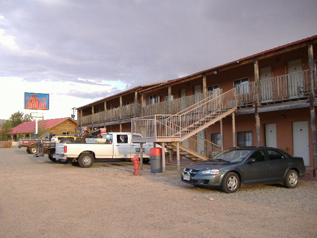 Troviamo una comodissima sistemazione al «Mexican Hat Lodge», un motel lungo la strada principale. Ha la pensilina esterna come si vede nei film: chissà se incontreremo Thelma & Louise? L'esperienza "pulciona" del «Lazy Lizard» di Moab è ormai lontanissima!